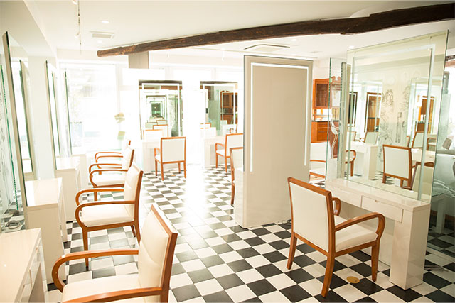 石神井公園店はパリの老舗ホテルをイメージした内装。長年通われているお客様も多く、地域に愛されるサロンです。